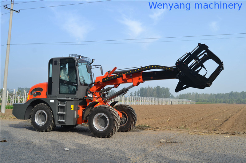 Cargador de ruedas con pluma telescópica y cuchara de 2 toneladas y 0,8 m3 con una altura máxima de elevación de 5100 mm